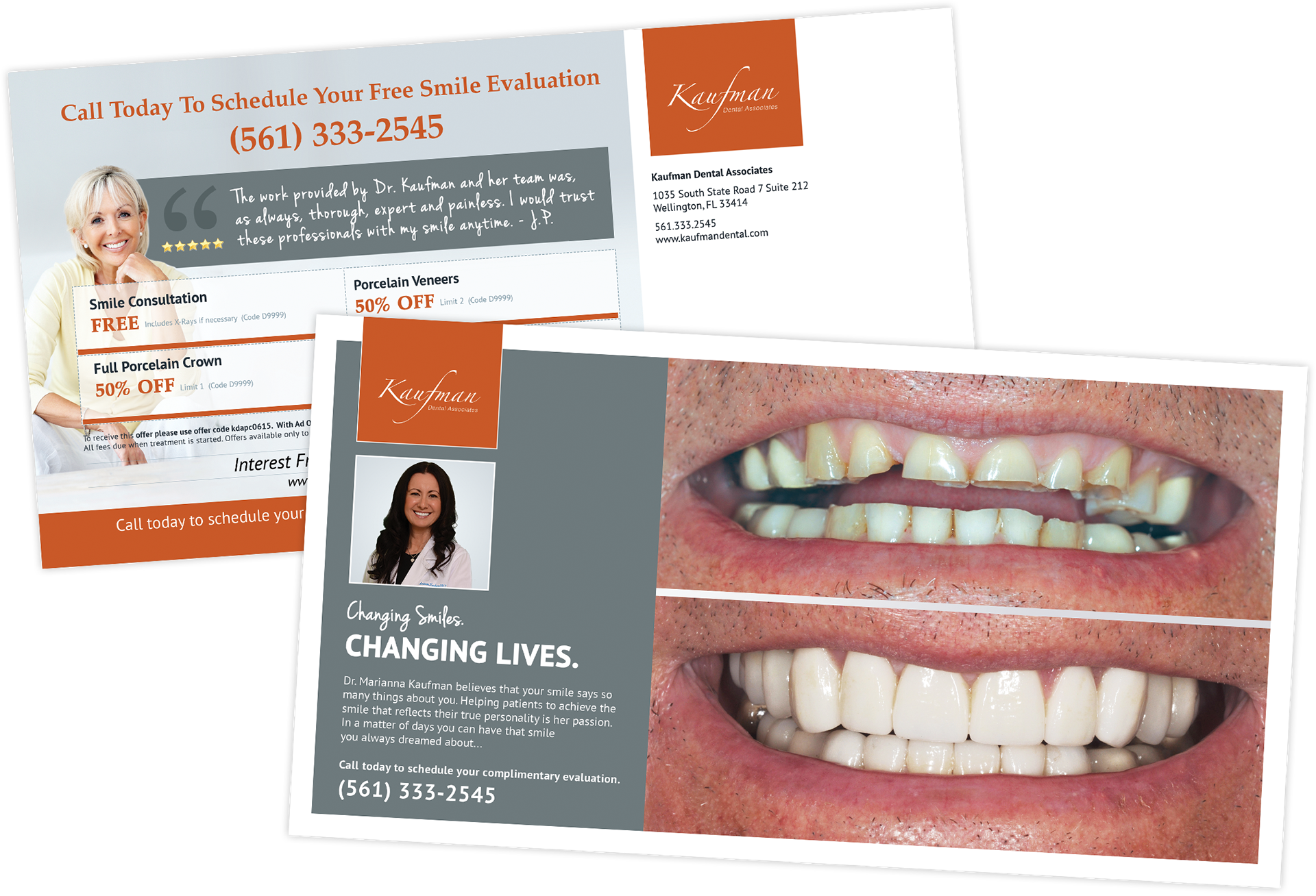 Kaufman Dental Associates, a dental practice that specializes in cosmetic dentistry, came to me looking for a series of direct mail postcards that would ensure people remember who they are. They were to be memorable and creative that would capture the essence of their business and philosophy.