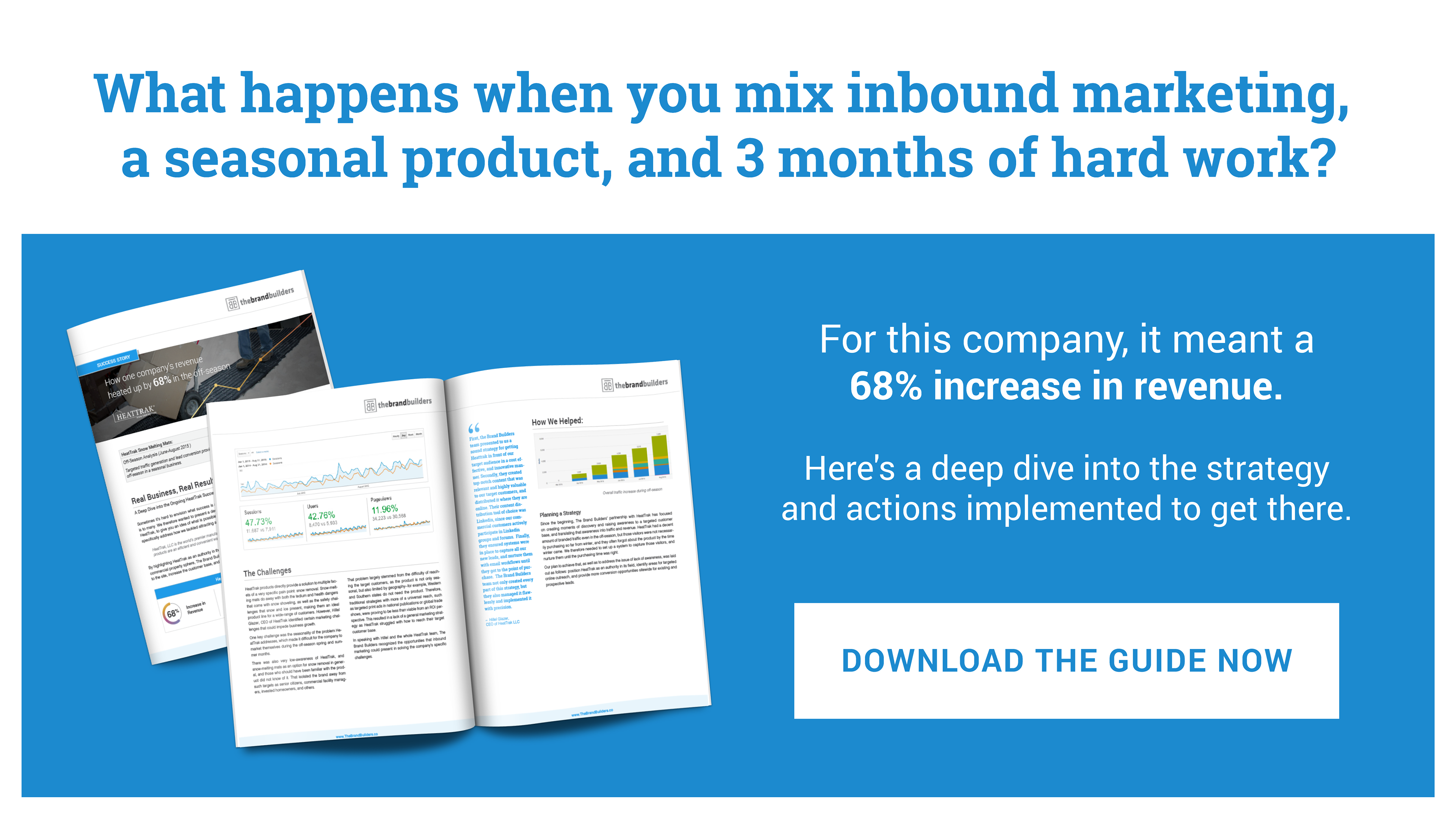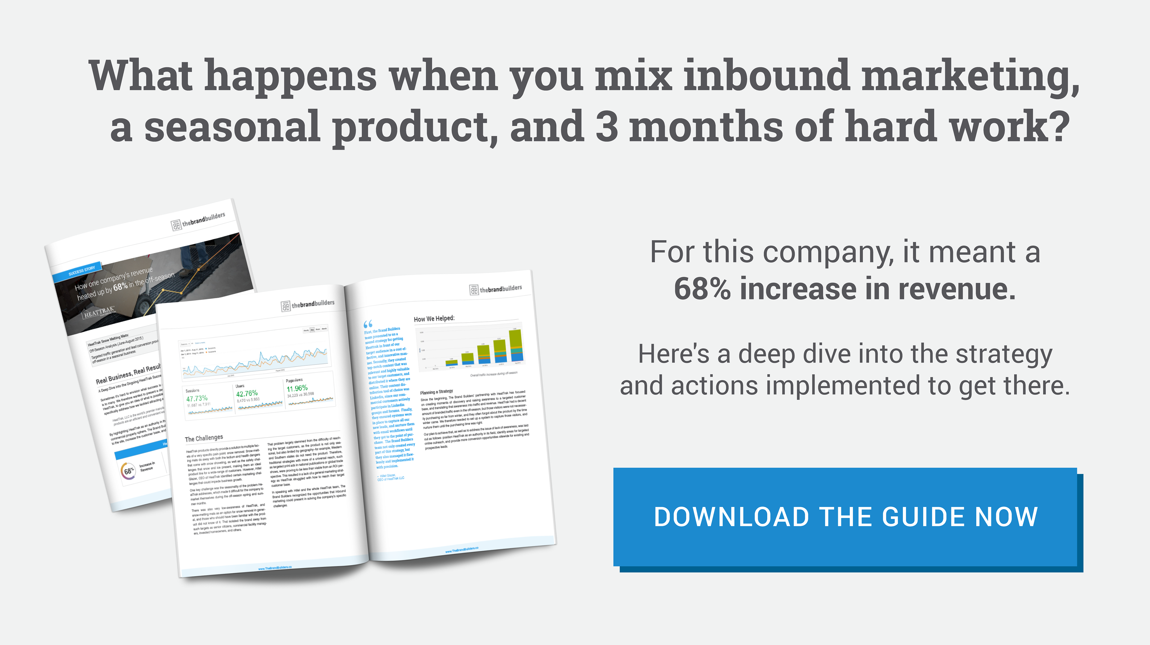 The Brand Builders is a full-service Inbound Marketing Agency and certified Hubspot Partner. They came to me looking for someone to visualize how they bring traditional business values to modern marketing methods, and communicate that through the design and layout of online content such as case studies and ebooks with supporting calls to action (CTAs) and banners.